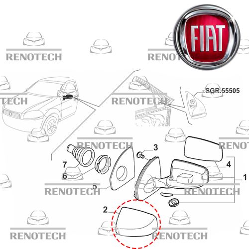 CAPA DO RETROVISOR - LADO DIREITO - FIAT